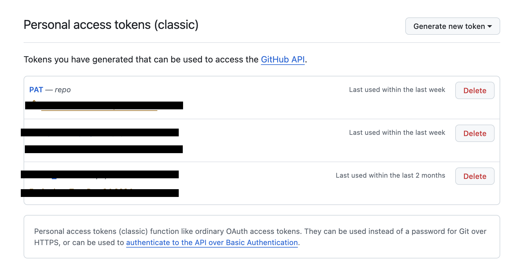 제 로컬에 등록해둔 환경변수가 문제인지 확인하기 위해 github.com에 제 PAT를 등록해두었습니다.