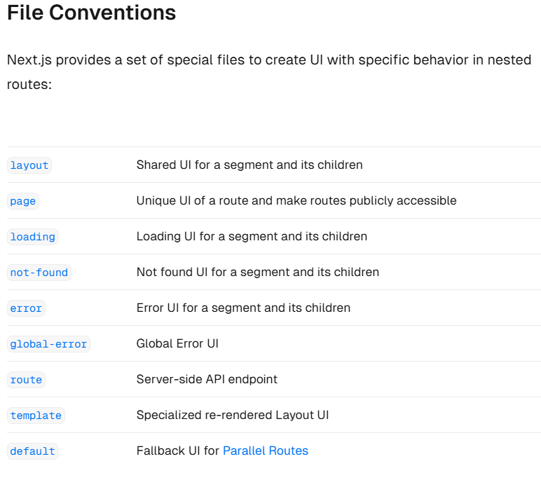 공식 문서에서 안내해주고 있는 파일 규칙들입니다. 라우팅에 대한 기본적인 이해는 여기서 끝내겠습니다.
