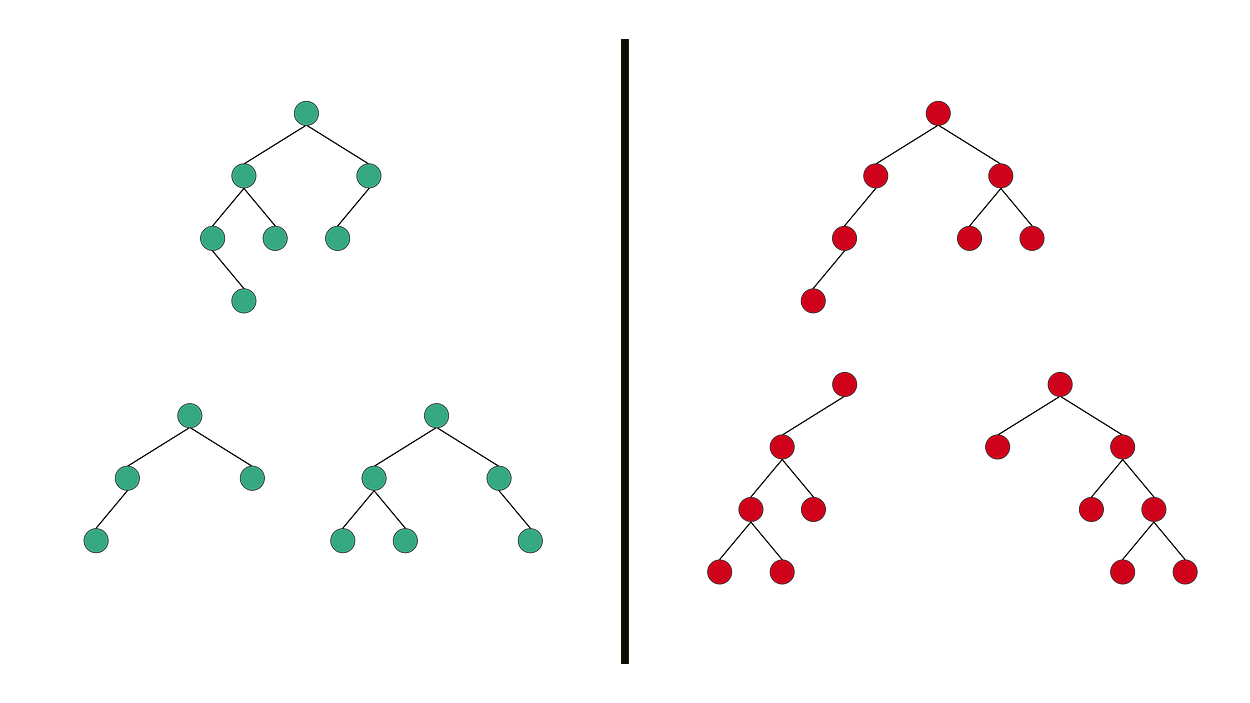 위 그림의 왼쪽의 경우 균형이진트리이고, 오른쪽은 아닙니다.